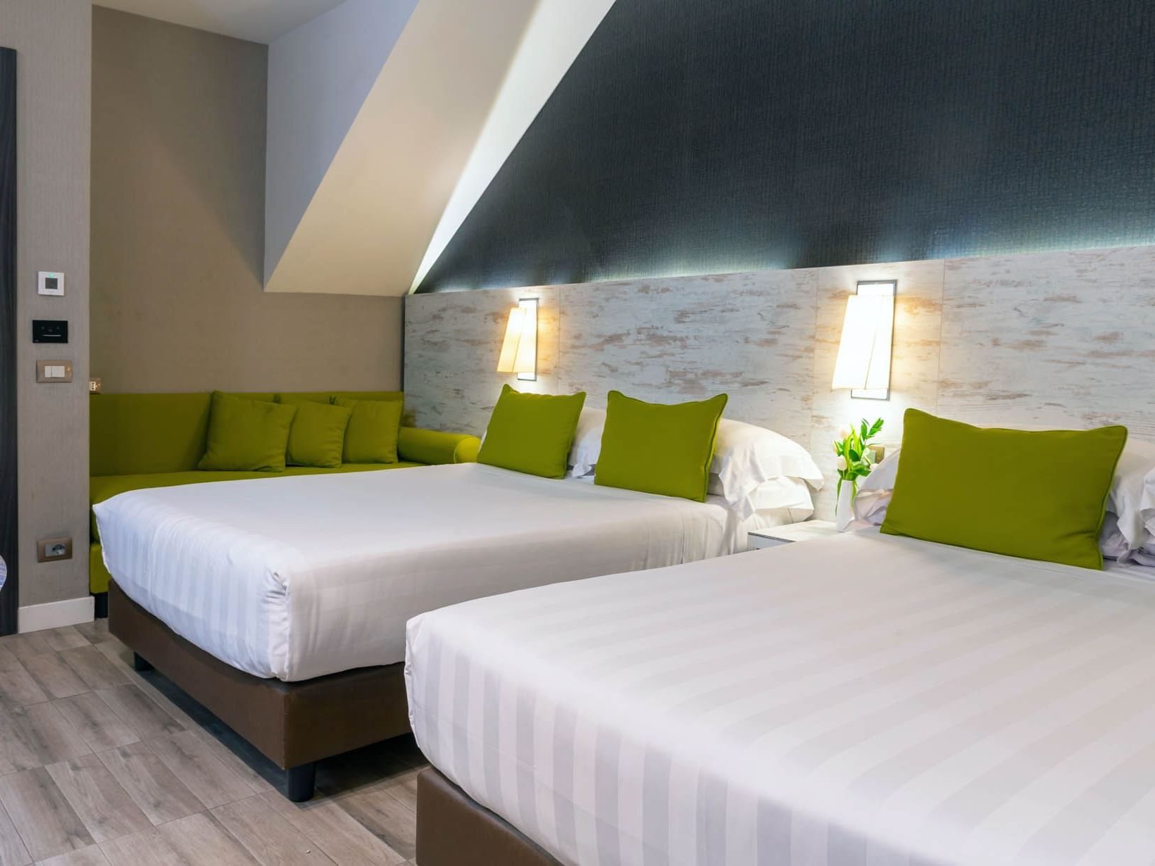 Perfetto per per un viaggio in famiglia o con gli amici, il Family Apartment, 20 mq, può ospitare fino a 5 persone con due letti queen-size e un comodo divano letto.