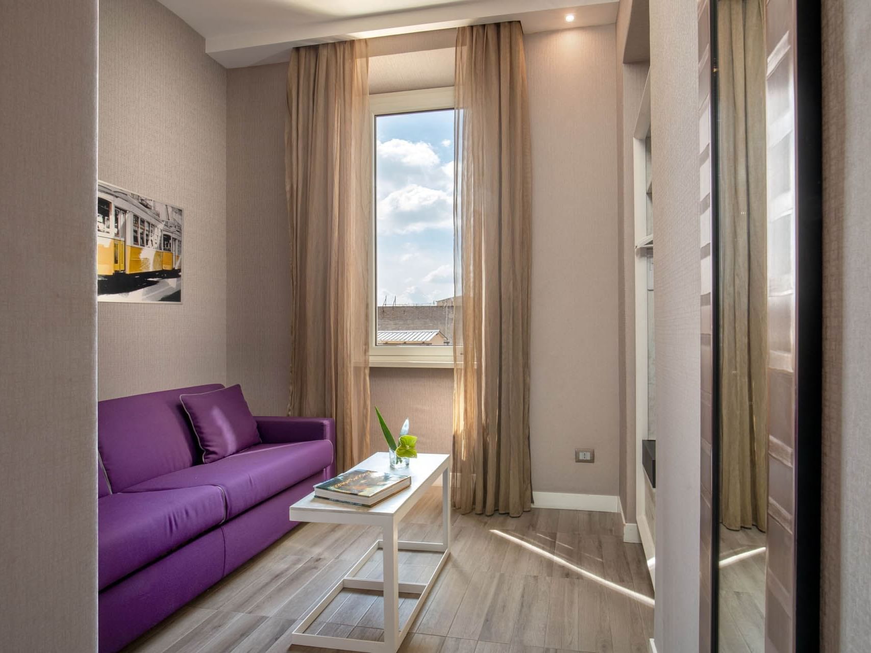 Elegante e spaziosa, la Junior Suite di 30 m² è perfetta per famiglie o gruppi di amici, con una zona living separata e un comodo letto king-size. La dormeuse può ospitare fino a 2 persone (bambini) per un totale di 5 ospiti. Gli arredi moderni e i comfort esclusivi, come accappatoio, ciabattine, cesto di frutta fresca e una bottiglia di Prosecco, offrono un’esperienza di soggiorno unica. Tra i servizi inclusi: Wi-Fi, TV satellitare, minibar e bollitore con tè e caffè.